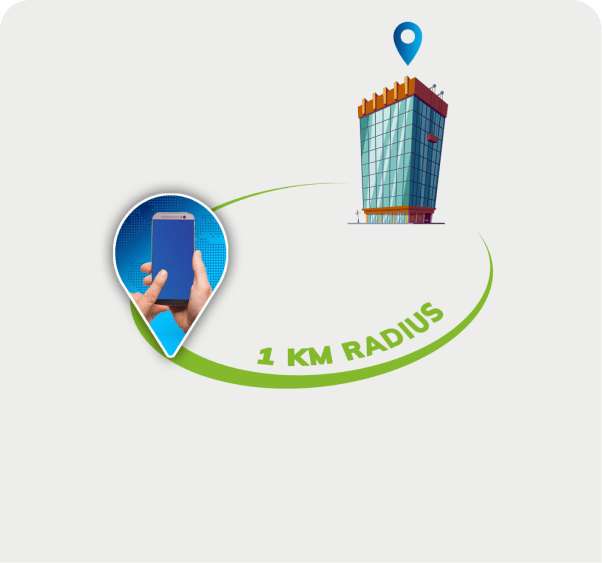 Pulse Mobile app homepage within 1 km distance of a designated location